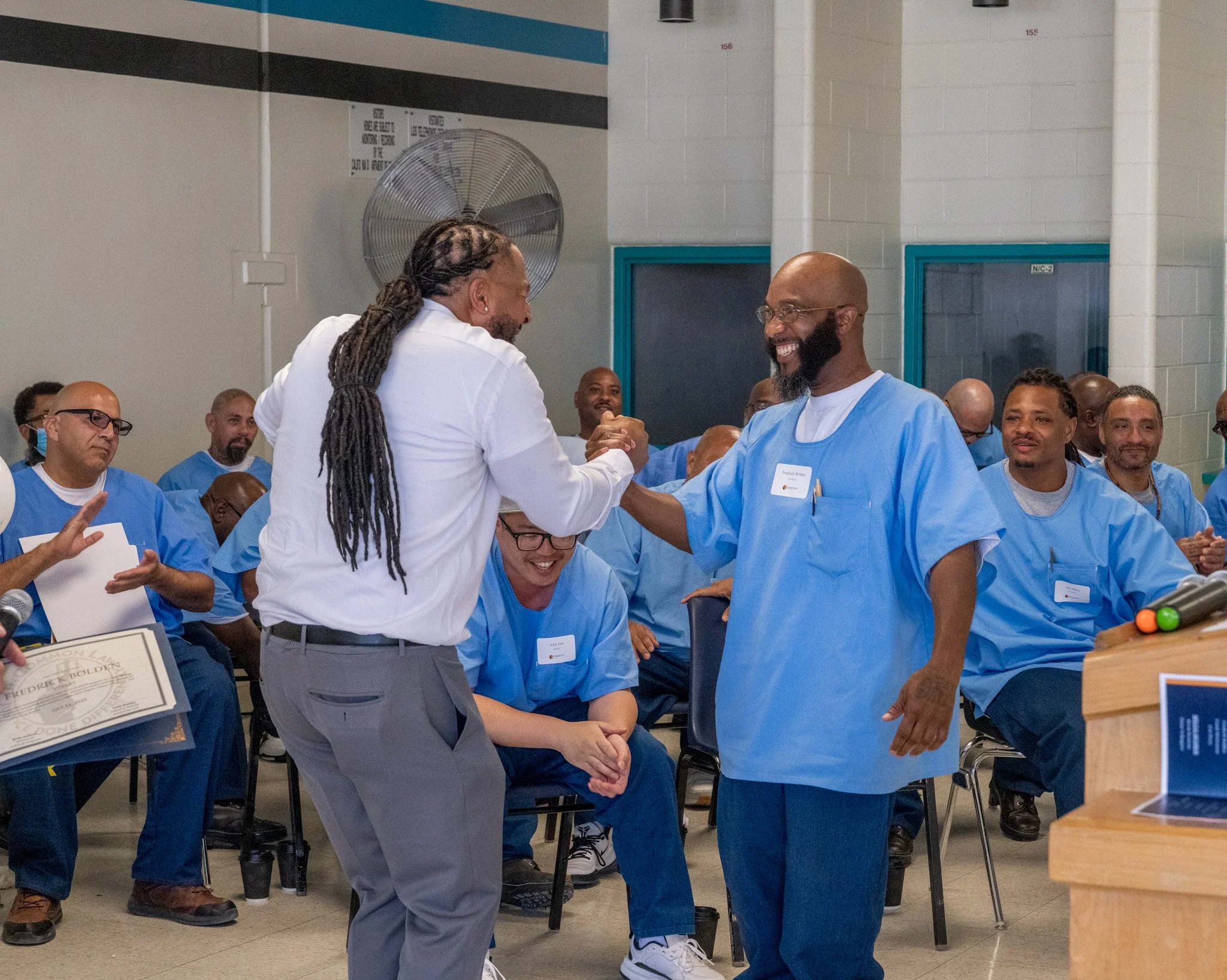 Earlier this year, we held a powerful graduation for our third Home After Harm cohort on July 31, 2025, at California State Prison, Los Angeles County (Lancaster). The ceremony honored 27 graduates and three peer mentors who completed the program and celebrated their steps toward growth, healing, and transformation. Staff, loved ones, partners, community members, and peer mentors joined together for moving speeches, certificate presentations, and heartfelt reflections. We are proud of all the work our Home After Harm participants put in for themselves and feel honored to be a part of their journey.